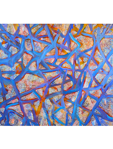 명상에 가까운 행위로 드러난다. 반복되는 붓질과 점의 축적은 즉흥적으로 보이지만, 그 이면에는 질서와 구조적 리듬이 작동한다. 통제와 우연, 자유와